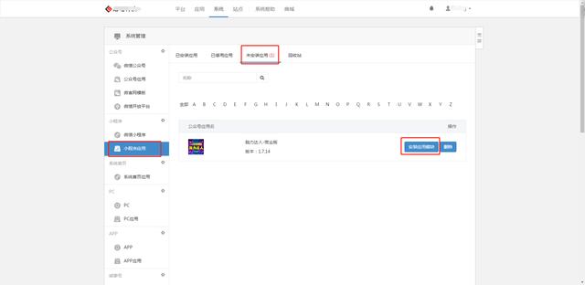 4.打开微电机的底部,点击小程序应用,点击未安装该应用程序,安装所述应用模块,并根据说明进行安装。