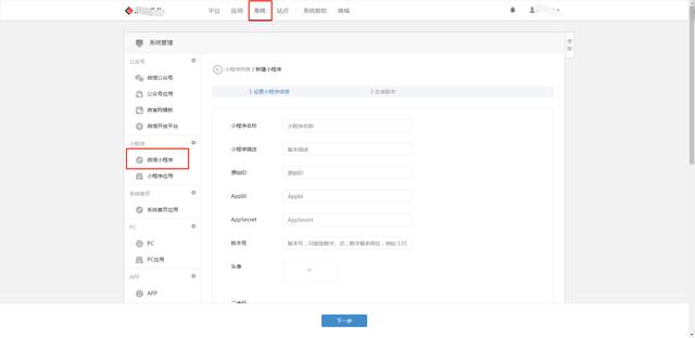 第五,在微电机的底部,点击小程序微通道,加入小程序,选择手动添加小程序,新小程序单独,填写申请小程序信息,包括姓名小程序介绍ID原来,的AppId,AppSecret,版本号,图像(小程序logo),QR码(QR码小程序),添加应用程序(选择大脑的功率)。