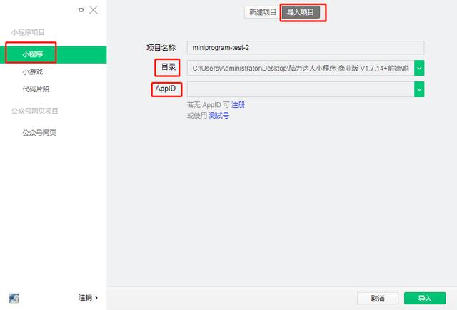 首先,打开微信我们下载的开发注册码扫描微信工具网的最后一节中,选择导入项目,项目名称可以在默认情况下进行更改,在目录中选择的文件夹源码前端,并完成APPID,单击导入。
